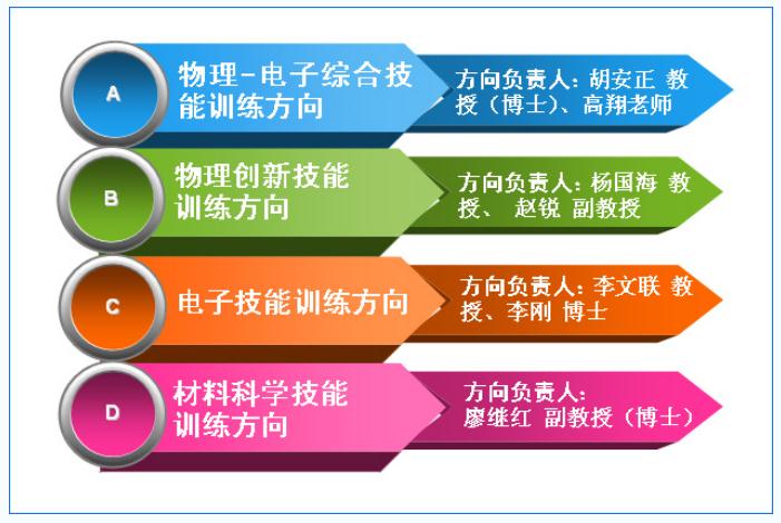 2、创新中心及主任职能:统一布置、组织、实施物电学院大学生创新创业训练日常管理工作和各种大学生竞赛组织协调管理工作;为创新中心分设“四个研究方向”,选拔相应方向负责人,分别承担相应的创新创业训练和竞赛活动。